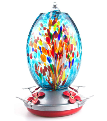 Add an artistic touch to any garden with this hand-blown hummingbird feeder! Easy to assemble and designed to attract birds, this would be a great gift for any nature lover!