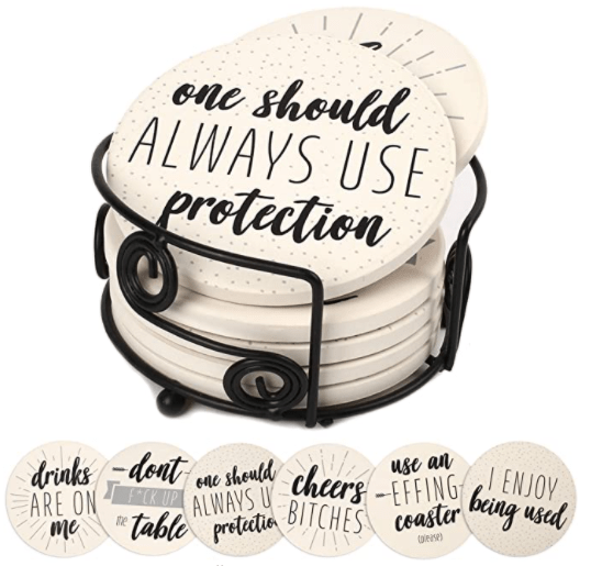 Whether it’s a White Elephant, or a Christmas gift – these funny coasters are a great conversation starter and ice breaker while getting your furniture protected.