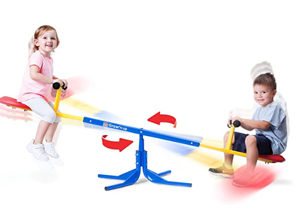 We’ve spent more time outside this year and this seesaw was such a big hit, we even took it indoors on the rainy days. It’s sturdy, fun and has no sharp angles, which is perfect because it actually rotates 360 degrees. It lists maximum weight as 99 lbs per seat, so we’ve had kids from 3 to 11 enjoy it year round.
